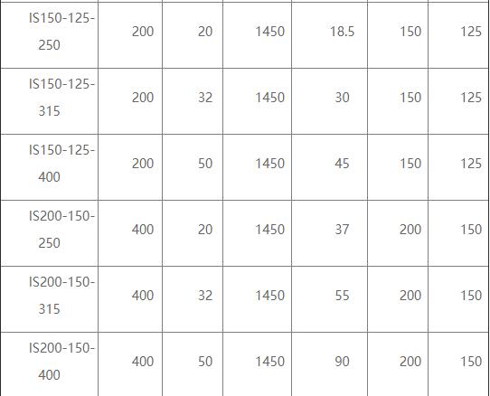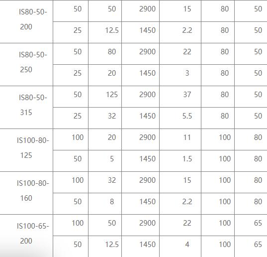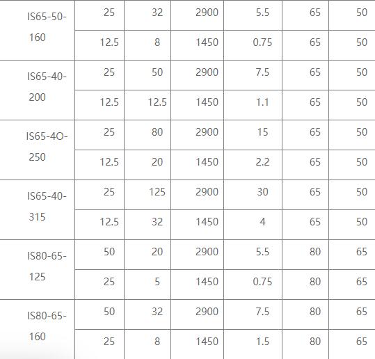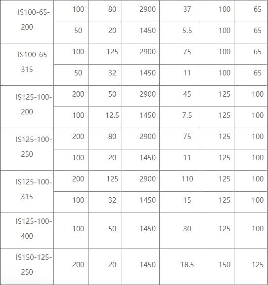 臥式離心泵的型號參數表